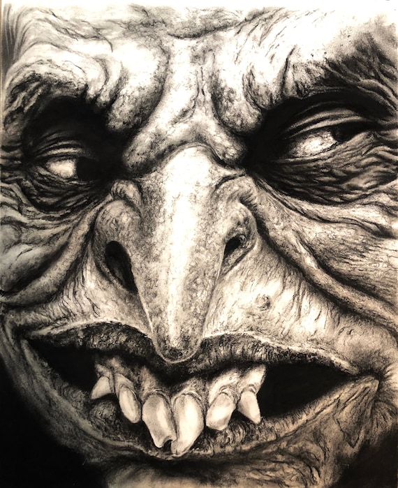 Creepy Face Drawing Original Charcoal For Sale Creepy Etsy Uk